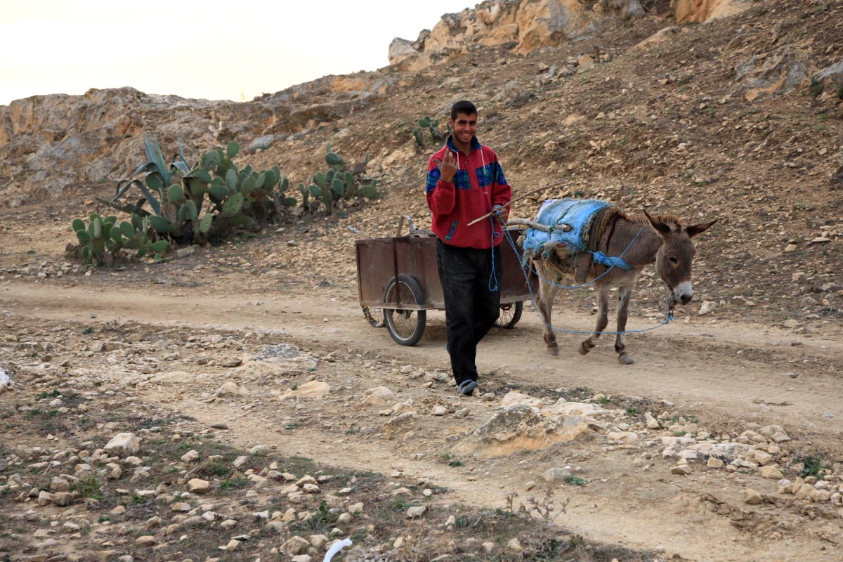 Kolem nás prochází pár Marokánců, jeden chce vyfotit a pak za to chce peníze. Vysvětluji mu, že mně lidé platí za fotky, takže může být rád, že jsem ho vyfotil zadarmo. Moc to nechápe a ještě asi půlhodinku poskakuje kolem, na všechno se ptá a ničemu nerozumí, pak konečně odchází i s oslíkem pryč a bere si sebou dalšího kámše, který se k nám přimotal. Jsme trochu nedůvěřiví k Marokáncům, ten debil na hranicích nás opravdu nasejřil, tak teď to s námi budou mít o něco těžší....